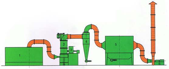 主机可根据用户料性要求,选用不同的材质,有不锈钢或碳钢两种。主机下部为高速旋转的粉碎装置,中部为干燥段,上部为分级装置。分级装置由变频器控制电机带动旋转,其转速可根据干料的细度及水份要求而加以调整。高速旋转的粉碎装置和分级装置在制造时都经过动平衡试验以减少振动和噪音,确保机器的使用寿命。